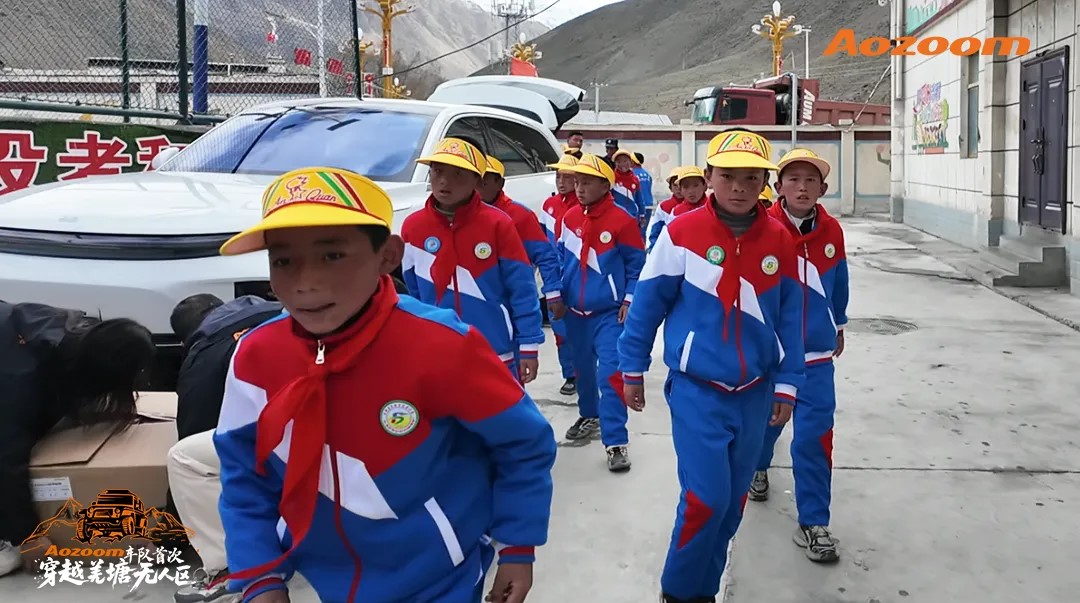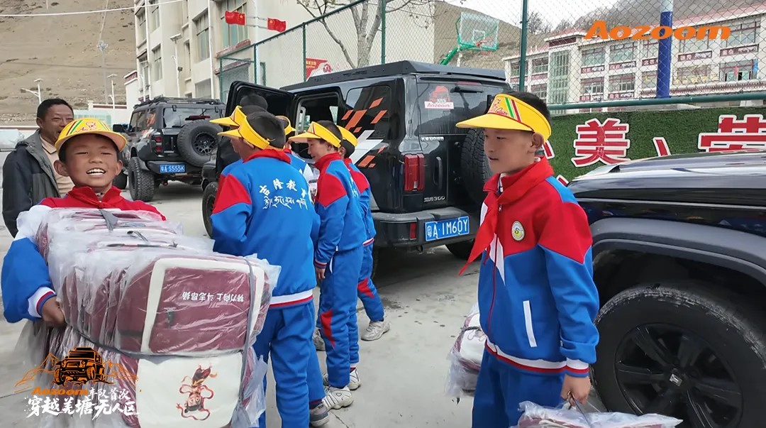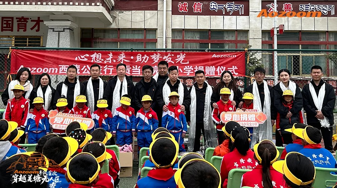 On May 23, 2025, the Aozoom convoy traversed the snowy plateau, reaching the majestic mountains and high clouds of Gongdang Township Primary School in Gyirong County, Tibet, to deliver school supplies and teaching materials to the children.